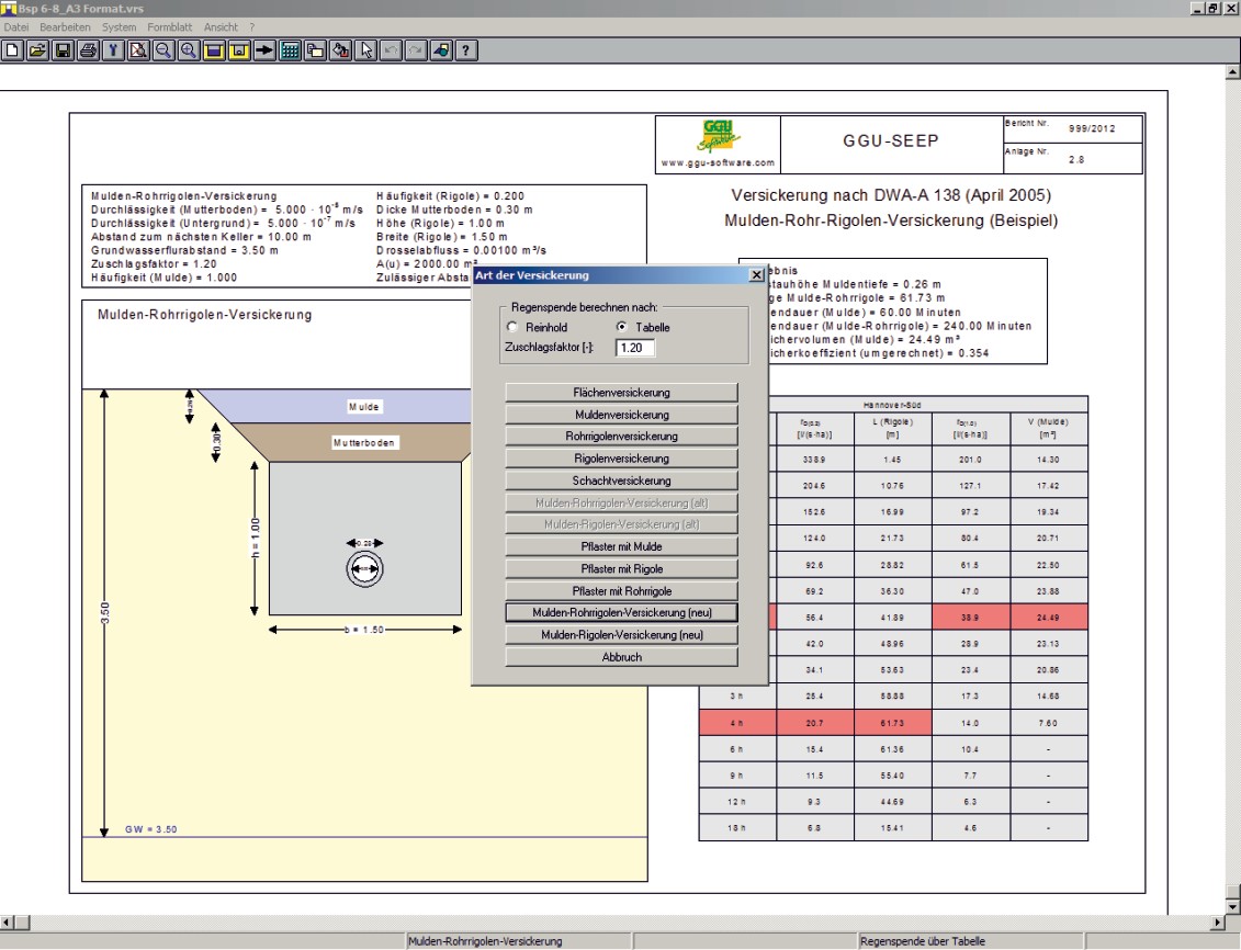 Bemessung von Anlagen zur Regenwasserversickerung mit GGU-SEEP