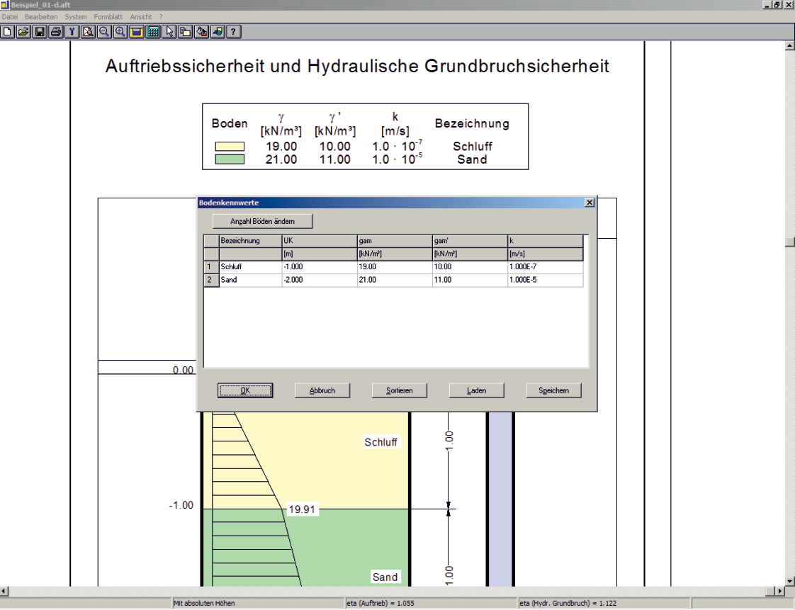 - Ermittlung der hydraulischen Grundbruchsicherheit klassisch oder nach Aulbach/Ziegler