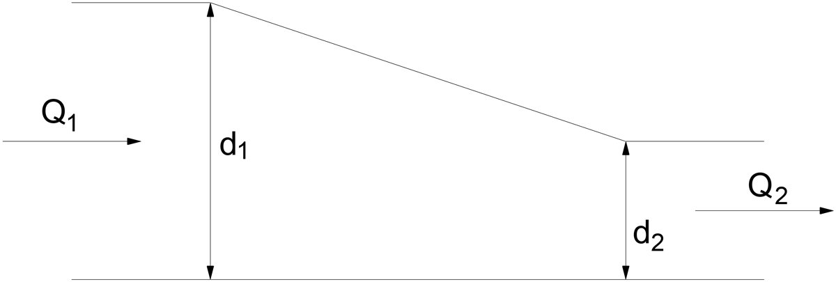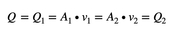 Die Kontinuitätsgleichung beschreibt, dass sich die Masse einer inkompressiblen Flüssigkeit (mit konstanter Dichte) in einem „Kontrollraum“ nicht ändern kann. Das Produkt aus Geschwindigkeit und durchströmter Querschnittsfläche ist gleich: