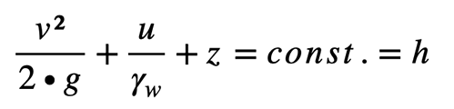 und ergibt sich aus den Anteilen der Lage- Druck- und Geschwindigkeitsenergie. Die Geschwindigkeitshöhe v²/2⋅g kann wegen der im Untergrund vorkommenden kleinen Fließgeschwindigkeiten im allgemeinen vernachlässigt werden. Somit bilden die geodätische Höhe und die Druckhöhe das Potential der Bewegung:
