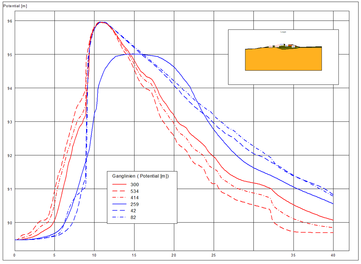 - Untergrundhydraulische Untersuchungen mit Berechnung eines Porenwasserdrucknetzes für einen stationären Ausgangszustand mit GGU-2D-SSFLOW
