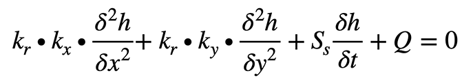 GGU-2D-TRANSIENT ermöglicht die Berechnung von instationären Grundwasserströmungen in horizontal ebenen, vertikal ebenen und rotationssymmetrischen Grundwassersystemen nach der Finiten-Element-Methode. Die zu lösende Differentialgleichung lautet für vertikal ebene Systeme: